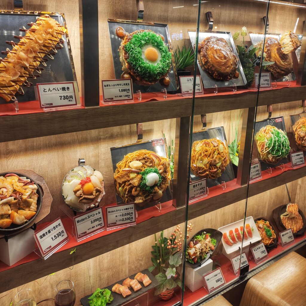 La terza grande differenza è che nei posti più turistici fuori dai locali troverete dei simpatici modellini in plastica delle pietanze vendute, talmente fatti bene da sembrare veri. Grazie ai modelli saprete subito cosa potrete trovare nel ristorante. Ad esempio